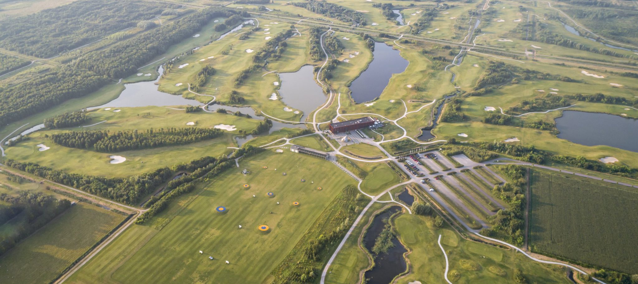 Een prachtige golfbaan waarbij de bosrand bijna altijd op de achtergrond aanwezig is. Zo zijn er holes waar het windstil is echter zijn er ook verschillende holes waarbij de wind vrij spel heeft. Deze 18-holes baan bestaat uit twee lussen elke lus heeft 9-holes. Zo kan je ook voor kiezen om enkel 9 holes te golfen of juist achter elkaar de 2 lussen te lopen. Door dat de baan op 2 verschillende punten gestart kan worden zijn er ook veel plekken op de driving range om in te slaan. Zo hebben ze 42 afslagplaatsen waarbij de onderste laag overdekt is en de laag erboven in de buitenlucht is.